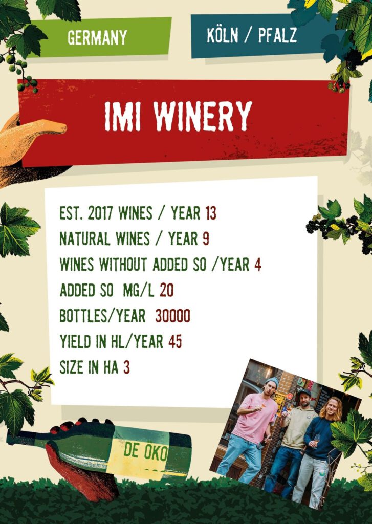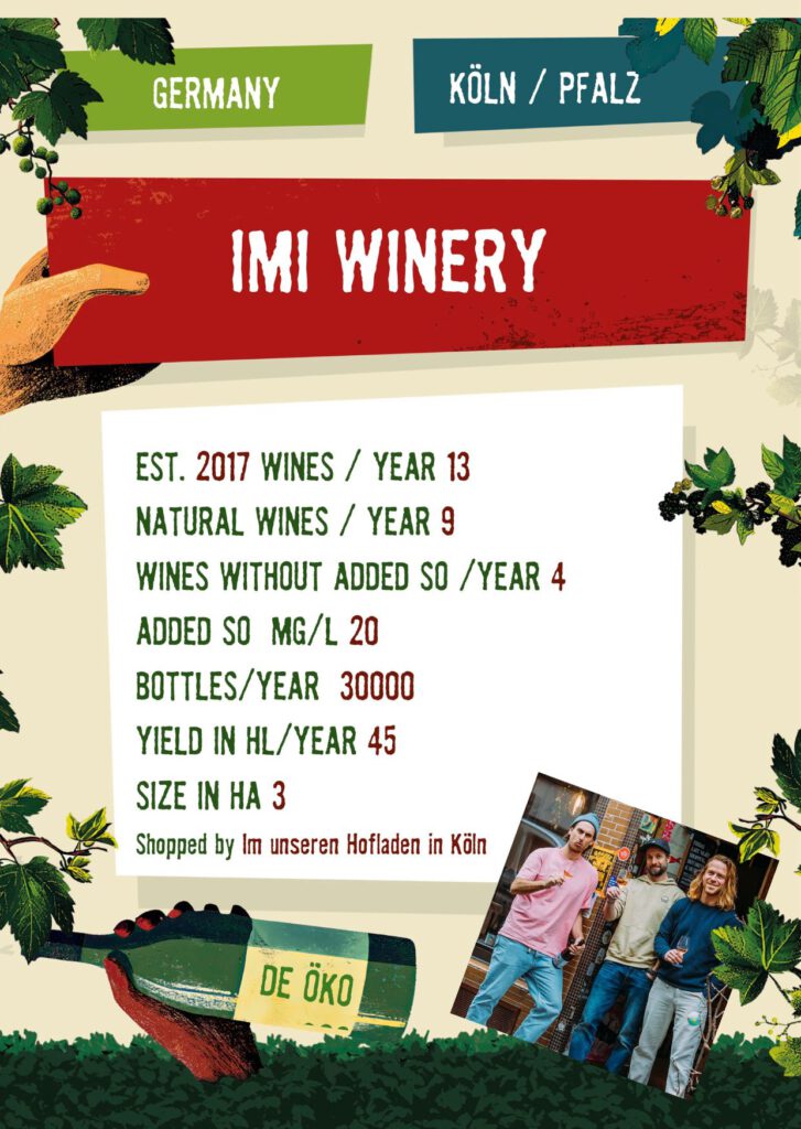 IMI Winery Wir machen Naturwein in Köln – perfekte Bedingungen Wein neu zu denken, handwerklich zu arbeiten und bewusst mit Konventionen zu brechen. 2026 2025 2024 2023